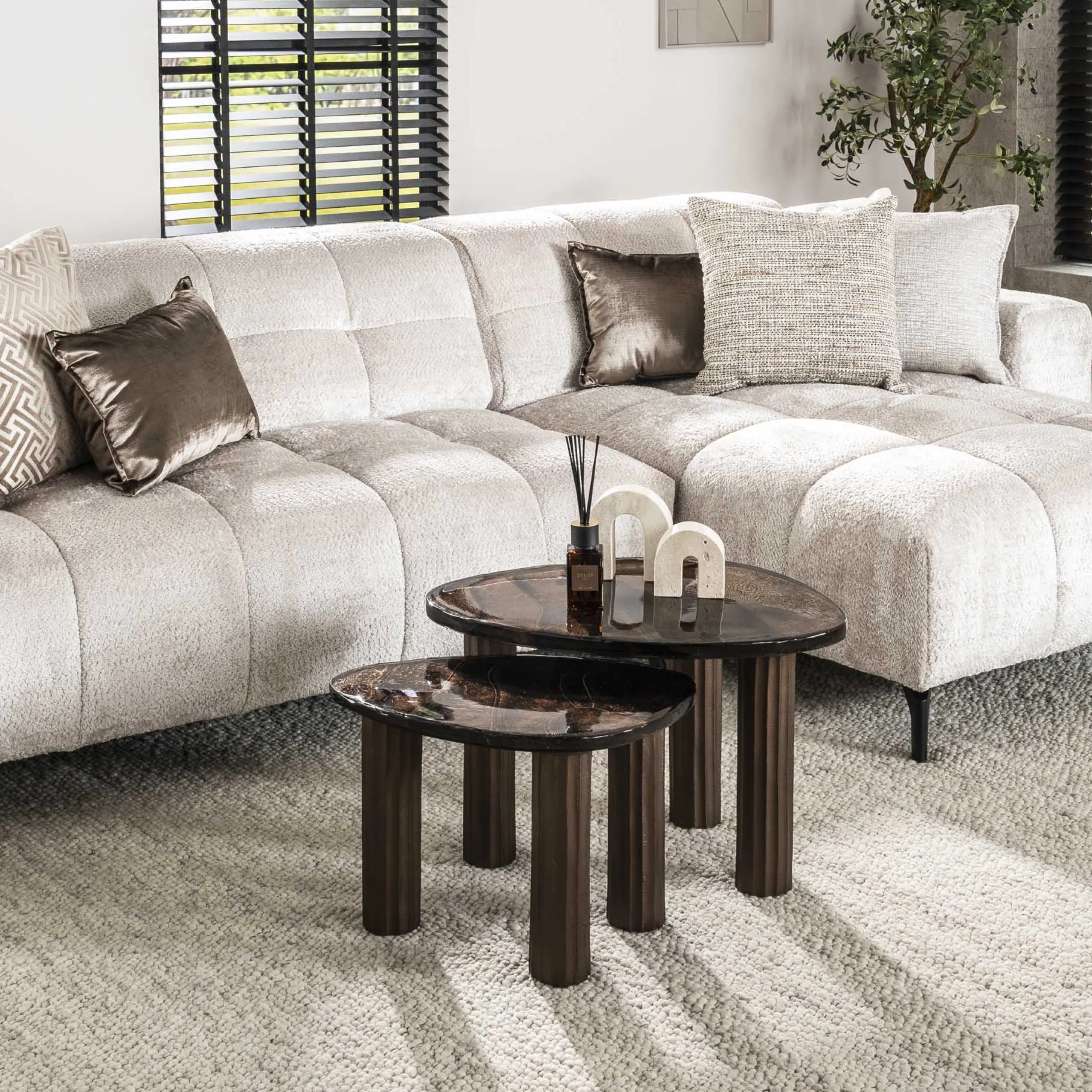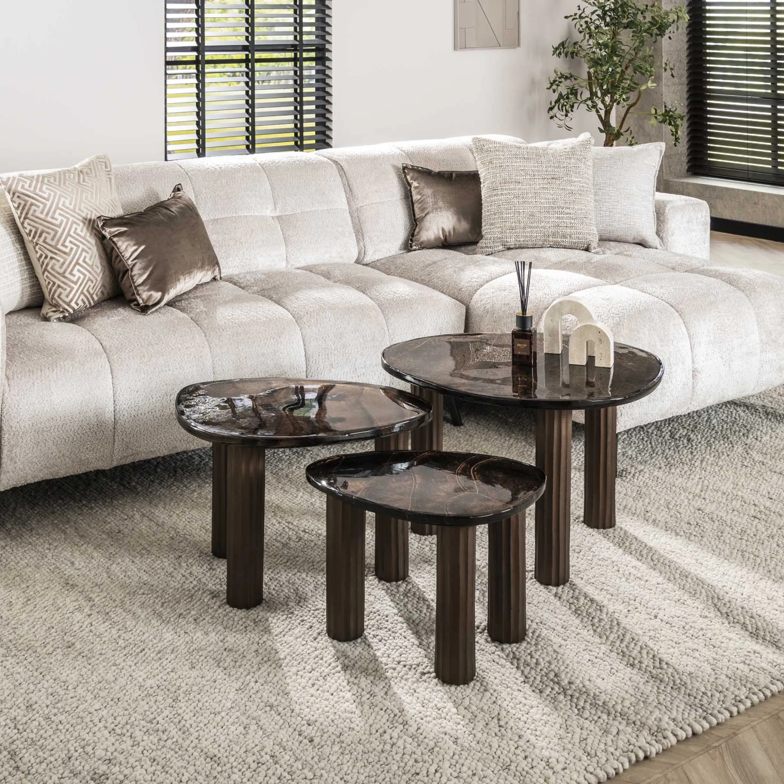 Retro Beistelltische Eclipse Glas Metall Dreibeinig Antik-Kupfer M-Vintagehaus Best