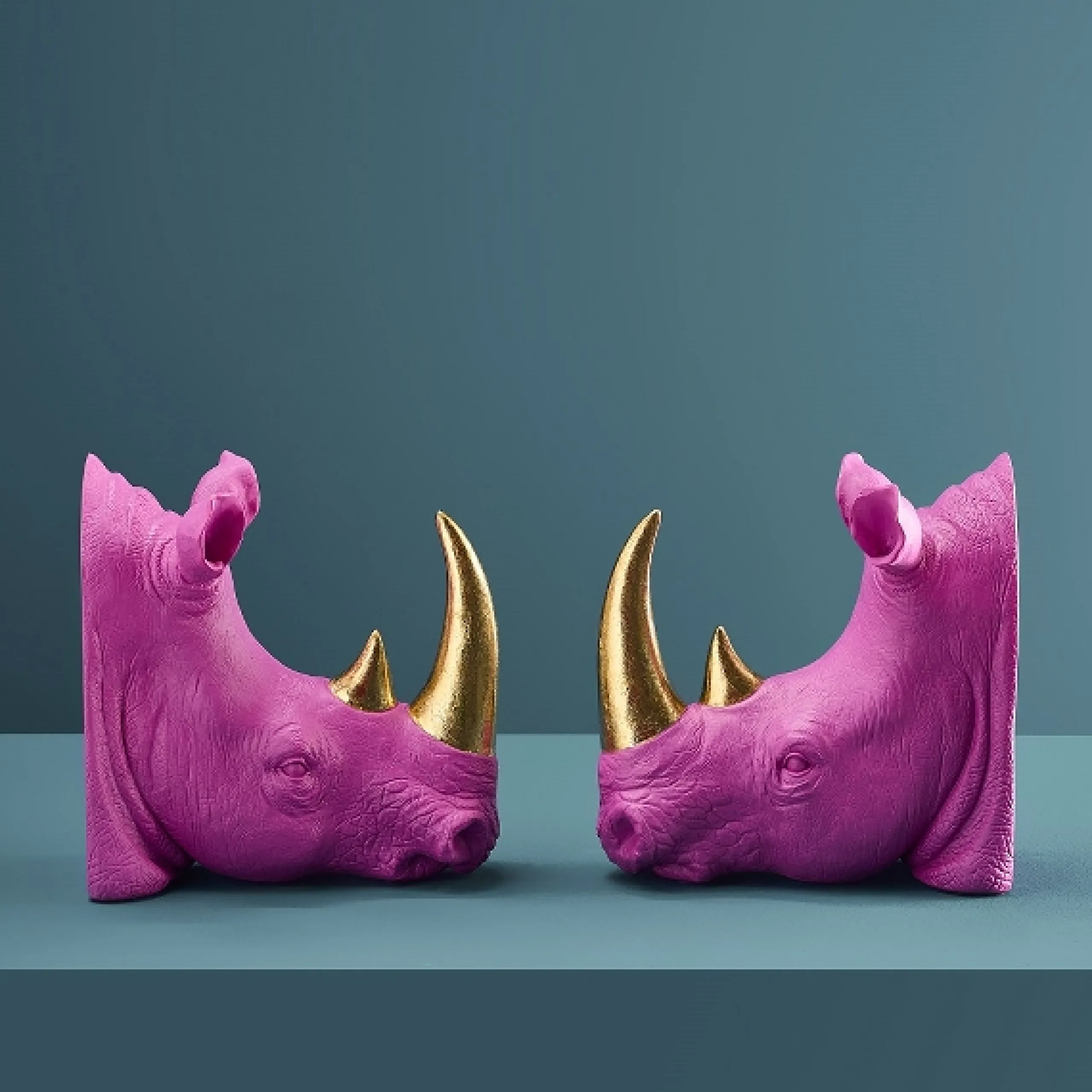 Retro Buchstützen Set Pop-Art Nashorn Pink Gold-Vintagehaus Accessoires Best