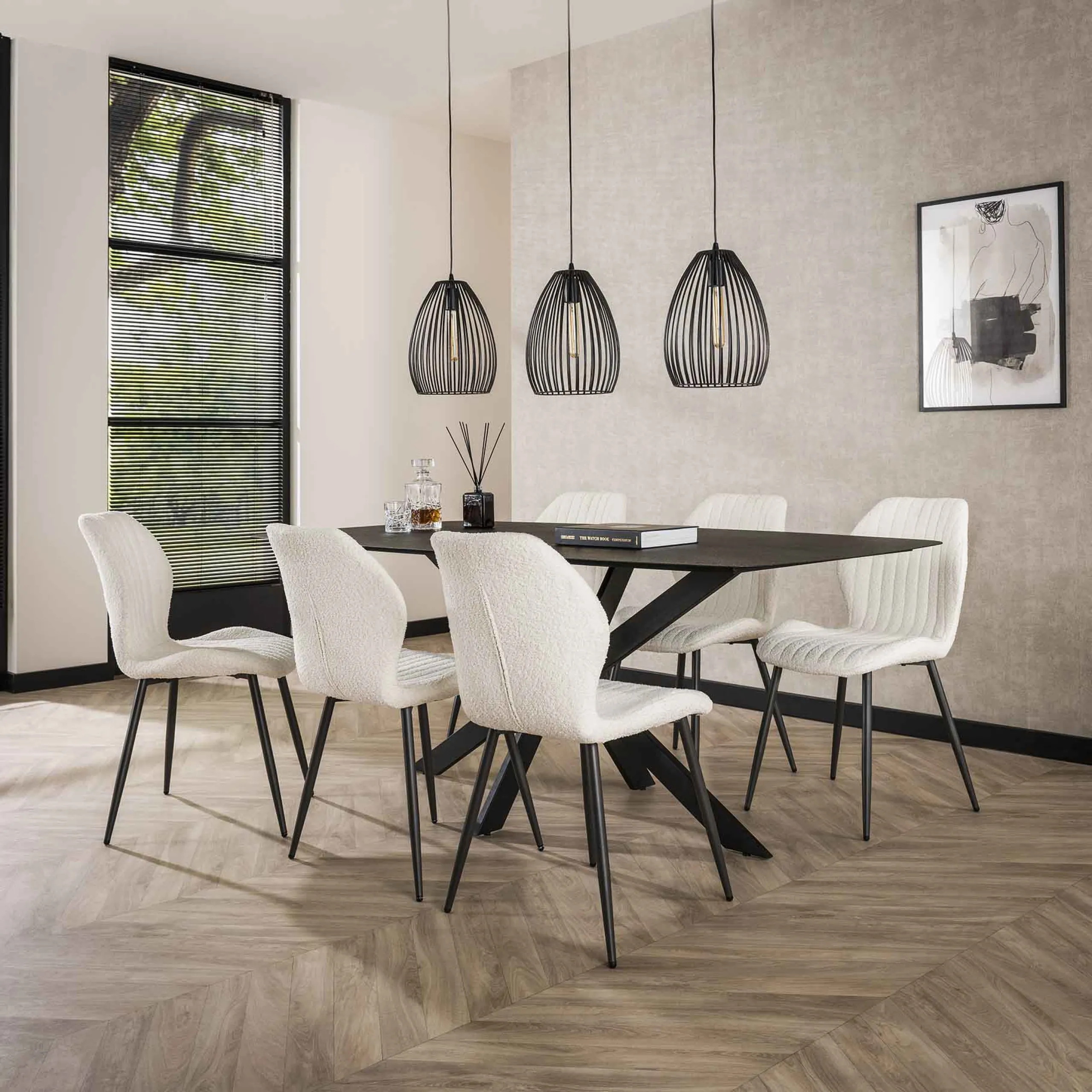 Retro Esstischstuhl Esszimmerstuhl Chevron Bouclé Weiß-Vintagehaus Discount