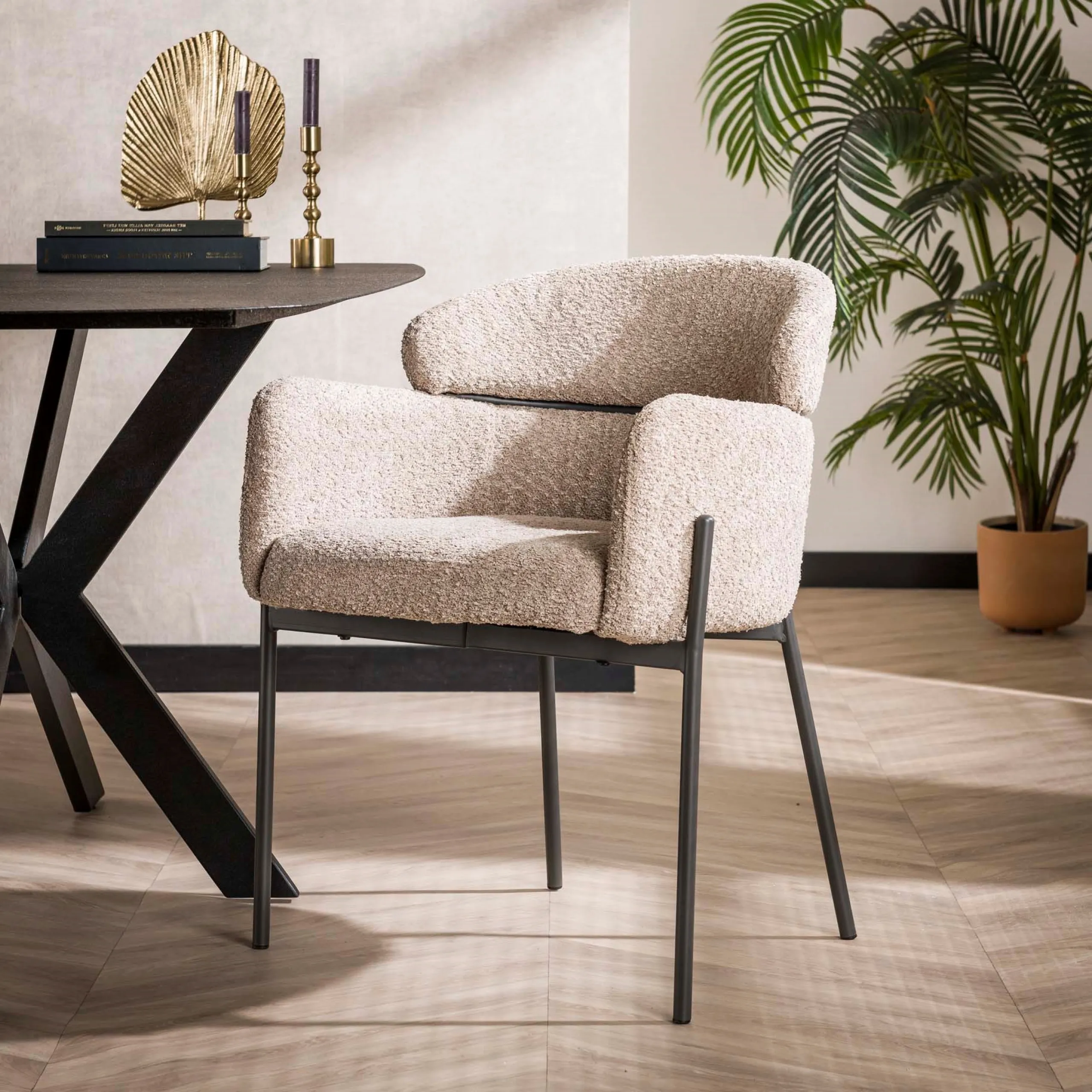 Retro Esszimmerstuhl Armlehnstuhl Bouclé Sand-Vintagehaus Clearance