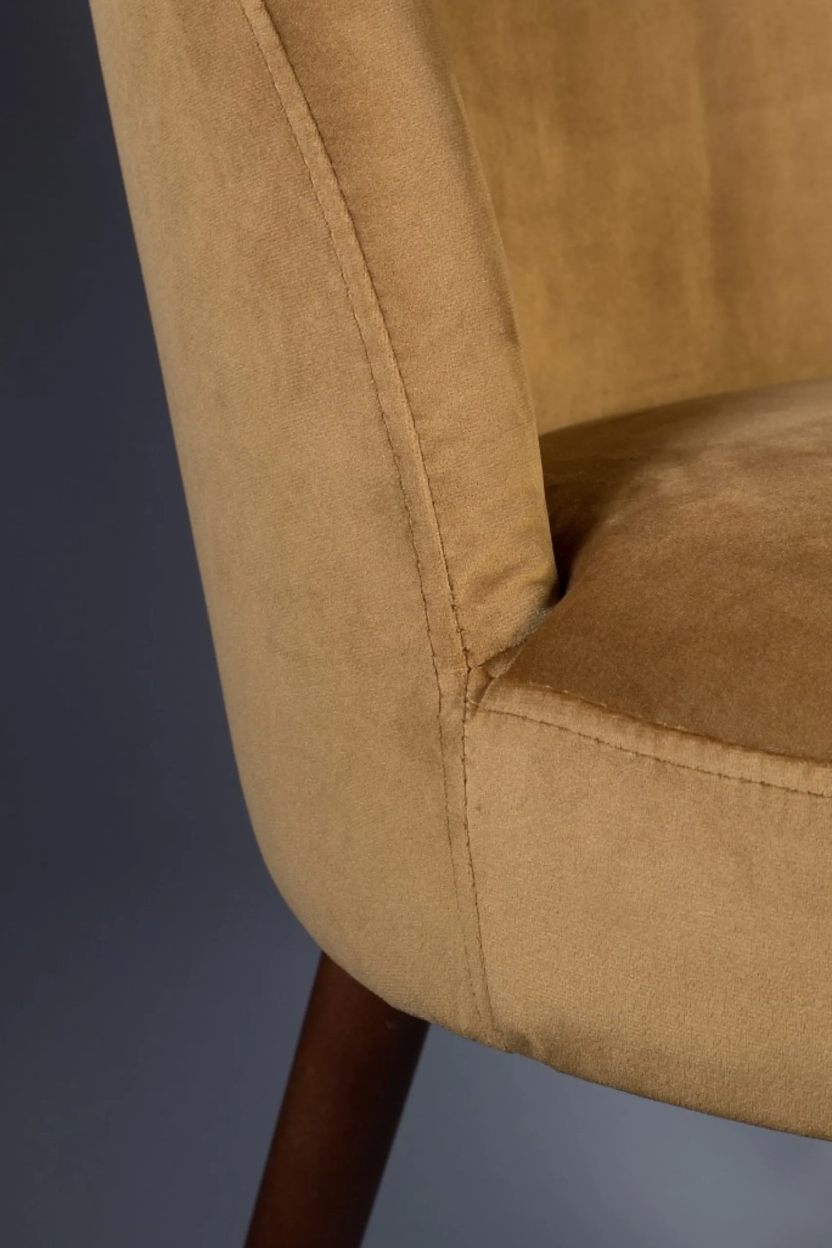 Satte Farbtöne und samtiges Material – Barbara ist ein außergewöhnlicher Stuhl, der sich beim sitzen weich an Sie schmiegt. Der warme Samtlook in Kombi mit den Buchenholzbeinen, die abgeschrägte runde Rückenlehne und die breite Sitzfläche ergeben zusammen eine klassische Schönheit an der Sie auch in Jahren noch Freude haben. Der luxuriöse Samtstoff rundet das Design ab. Wählen Sie Ihre Farben und kombinieren Sie diese miteinander.