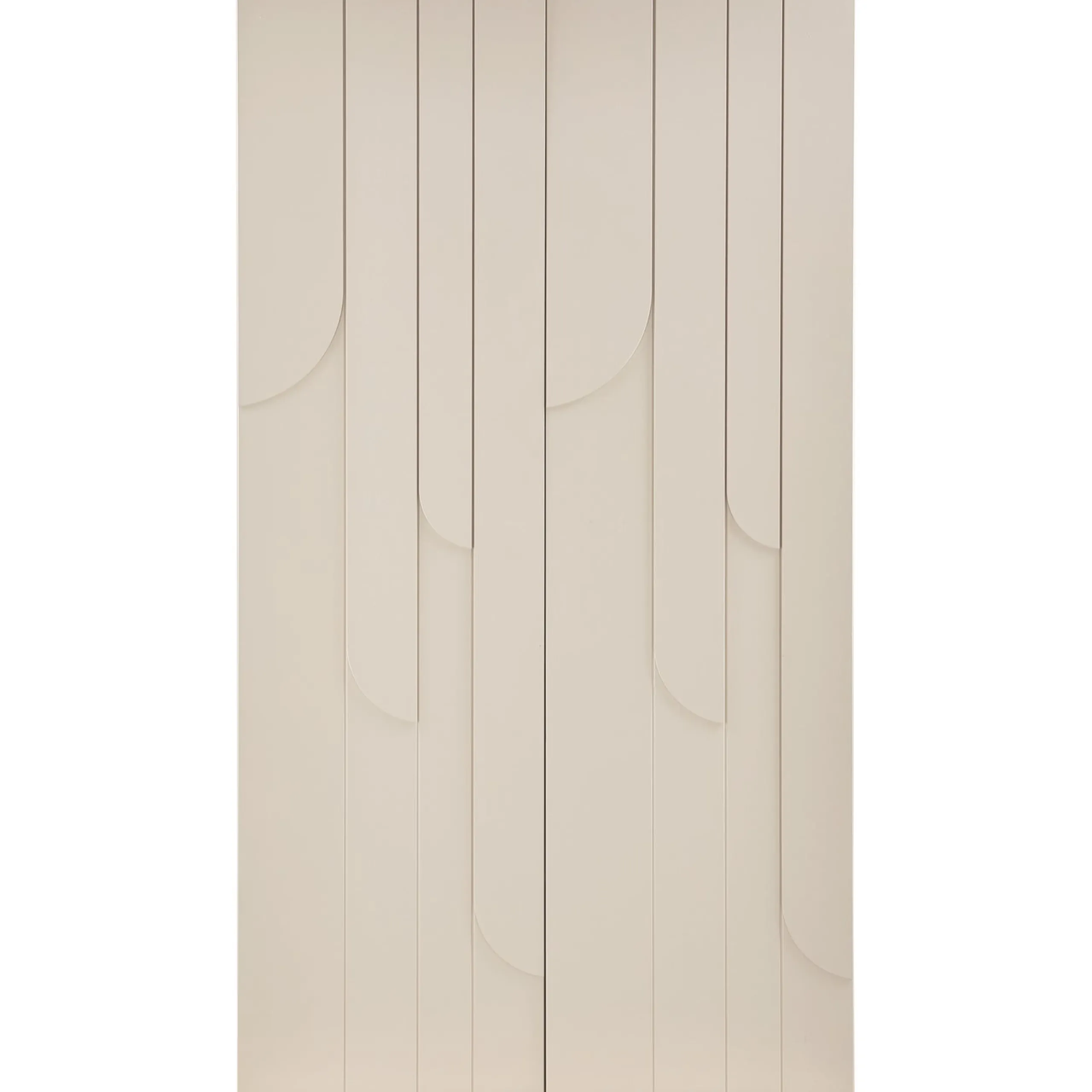 Dieser stilvolle Kleiderschrank aus massivem Kiefernholz vereint Funktionalität mit ästhetischem Design. Die Fronten sind mit einem einzigartigen wellenförmigen Muster gestaltet, das an Regentropfen erinnert, die sanft an Fensterscheiben herablaufen – ein echter Blickfang in Ihrem Schlafzimmer. Das natürliche Kiefernholz in einem ruhigen Beigeton sorgt für eine harmonische Atmosphäre.