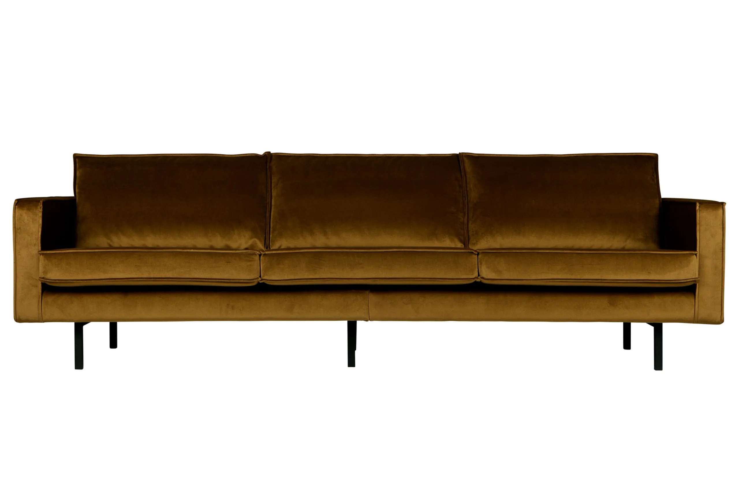 Das Sofa Rodeo von BePureHome ist ein modernes, robustes und zeitgemäßes Möbelstück für Ihr Wohnzimmer. Es ist aus 100% Jarra-Samt gefertigt und bietet Ihnen einen hohen Sitzkomfort und eine lange Lebensdauer. Die Couch hat eine klassische Form mit einer Breite von 277 cm und einer Tiefe von 86 cm. Die warmen Farben verleihen den Sofas einen glamourösen und eleganten Charakter. Die Rodeo Serie ist geräumig und bietet einen herrlich festen Sitzkomfort. Das hohe Fußgestell lässt die Möbel schlank und luftig wirken. Der Jarra-Samt besteht aus 100% Polyester und hat eine volle und schwere Qualität. Das Material ist daher für eine intensive Nutzung geeignet. Neben dem stilvollen Design bleibt der Samtstoff lange Zeit schön. Unser Jarra-Stoff ist farbecht, knittert nicht so leicht und ist sehr pflegeleicht. Je nach Geschmack führen wir die Rodeo-Reihe als Zwei- und Dreisitzer oder als Ecksofa.