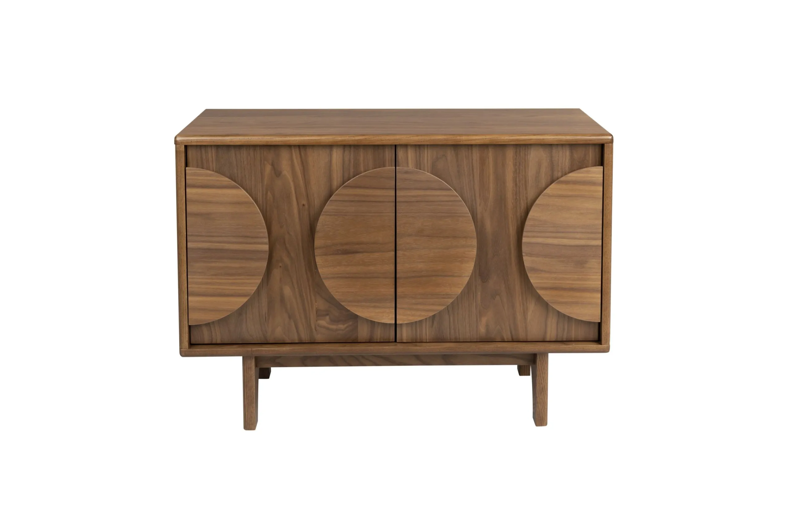 Entdecken Sie mit dem Sideboard Groove großzügigen Stauraum, ohne Kompromisse beim Stil einzugehen. Die runden Holzelemente an den Türen und die zierlichen, bogenförmigen Beine sorgen für eine einzigartige Note. Groove ist die perfekte Verschmelzung von Stil und Funktionalität und fügt sich mühelos in jeden Raum ein. Durch das Nebeneinanderstellen verschiedener Sideboards wird das Muster der Türen fortgesetzt. Die Kommoden sind aus natürlichem Holzfurnier gefertigt und werden zum Schutz ihrer Schönheit mit Öl gebeizt. Groove ist in verschiedenen Farben und Größen erhältlich, so dass für jeden Stil und Geschmack etwas dabei ist.