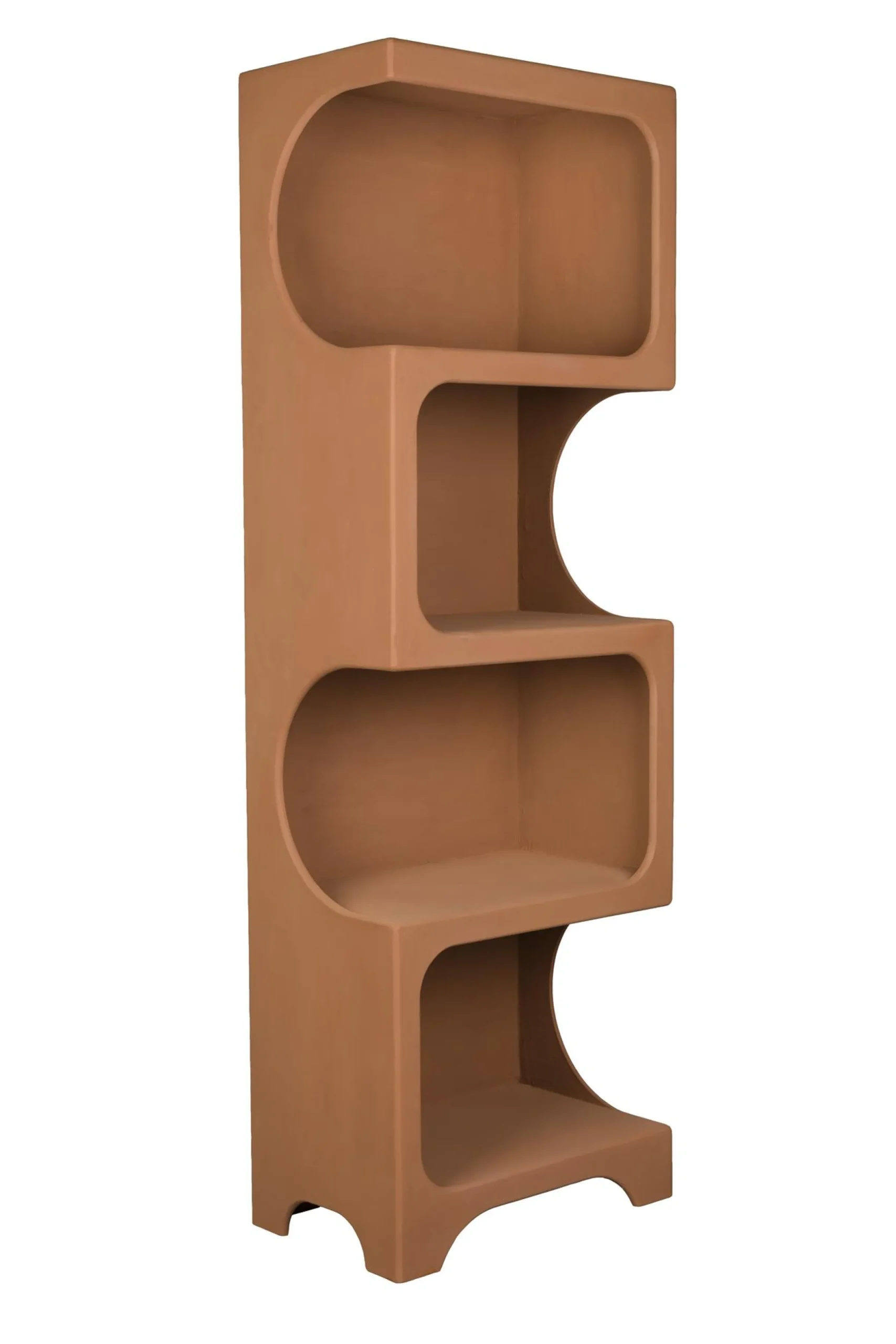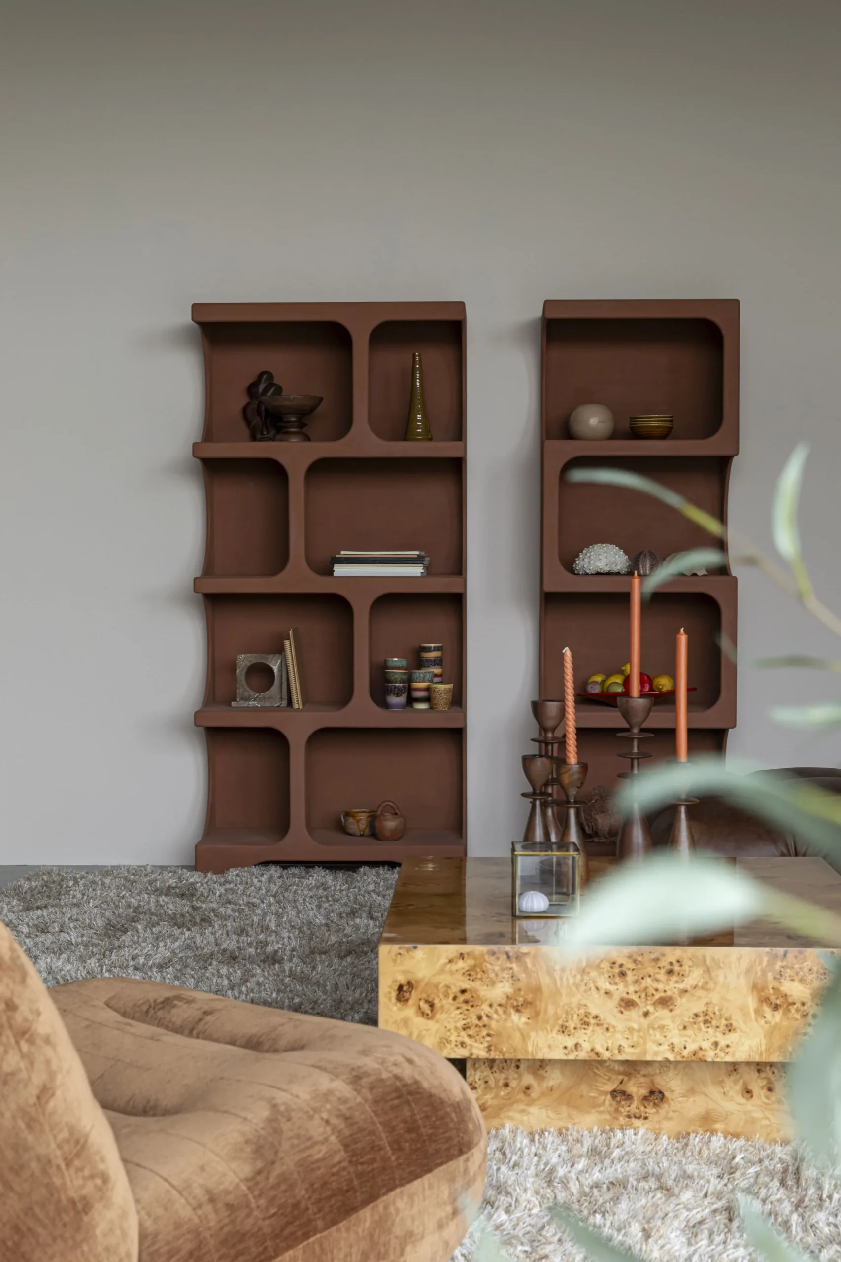 Diese Regale aus hochwertigem MDF sind weit mehr als reine Aufbewahrungsmöbel – sie sind ein Statement. Mit ihrer organisch abgerundeten Formensprache wirken sie fast wie kleine Architekturen im Raum, weich und zugleich kraftvoll. Die warm schokoladig-erdige Oberfläche unterstreicht ihren skulpturalen Charakter und bringt eine natürliche Behaglichkeit in jedes Interieur.