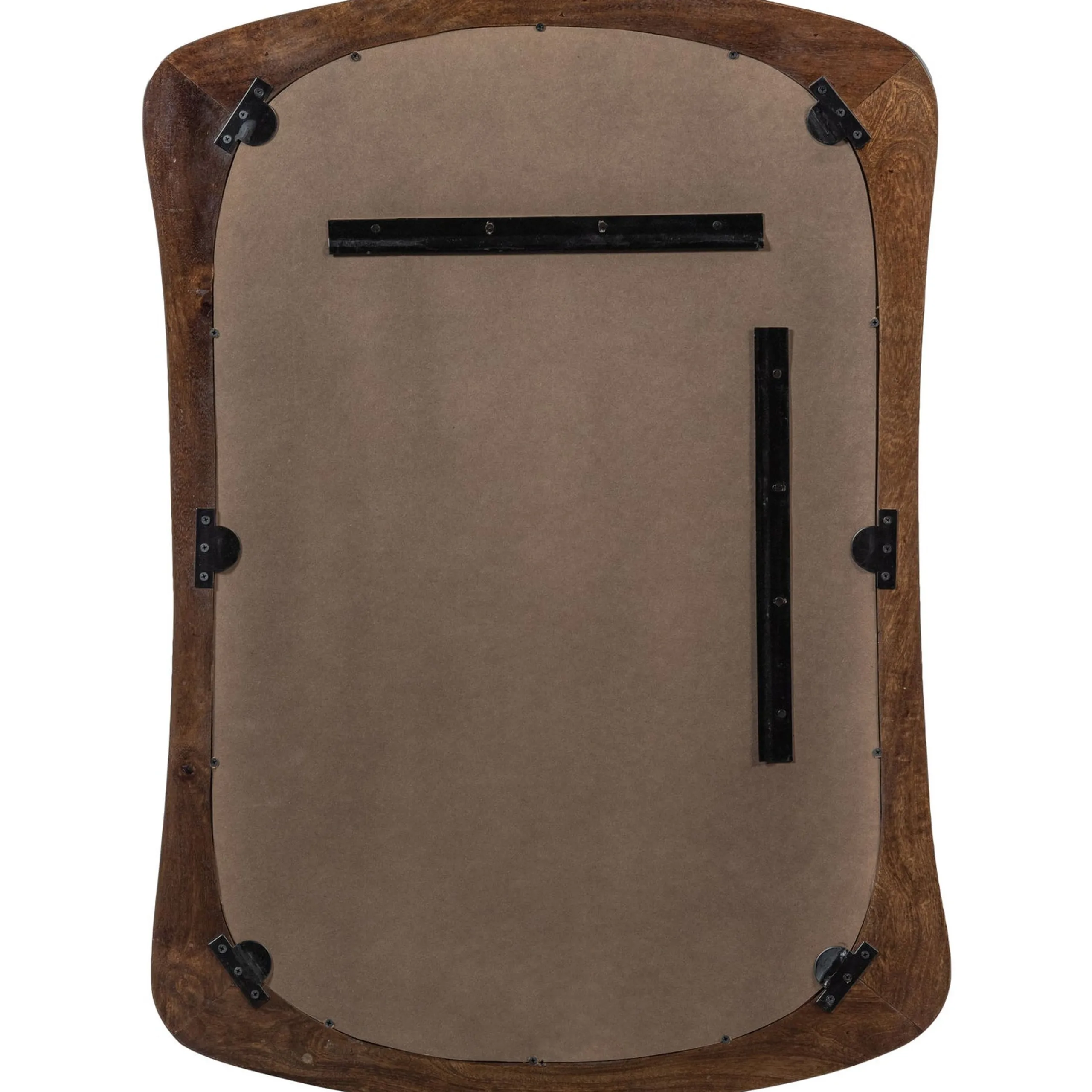 Der Spiegel Samuel ist in einen hochwertigen Mangoholzrahmen eingefasst, der durch seine warme, natürliche Maserung und robuste Struktur besticht. Die organische Form des Rahmens verleiht dem Spiegel eine sanfte, geschwungene Silhouette, die jedes Interieur aufwertet.