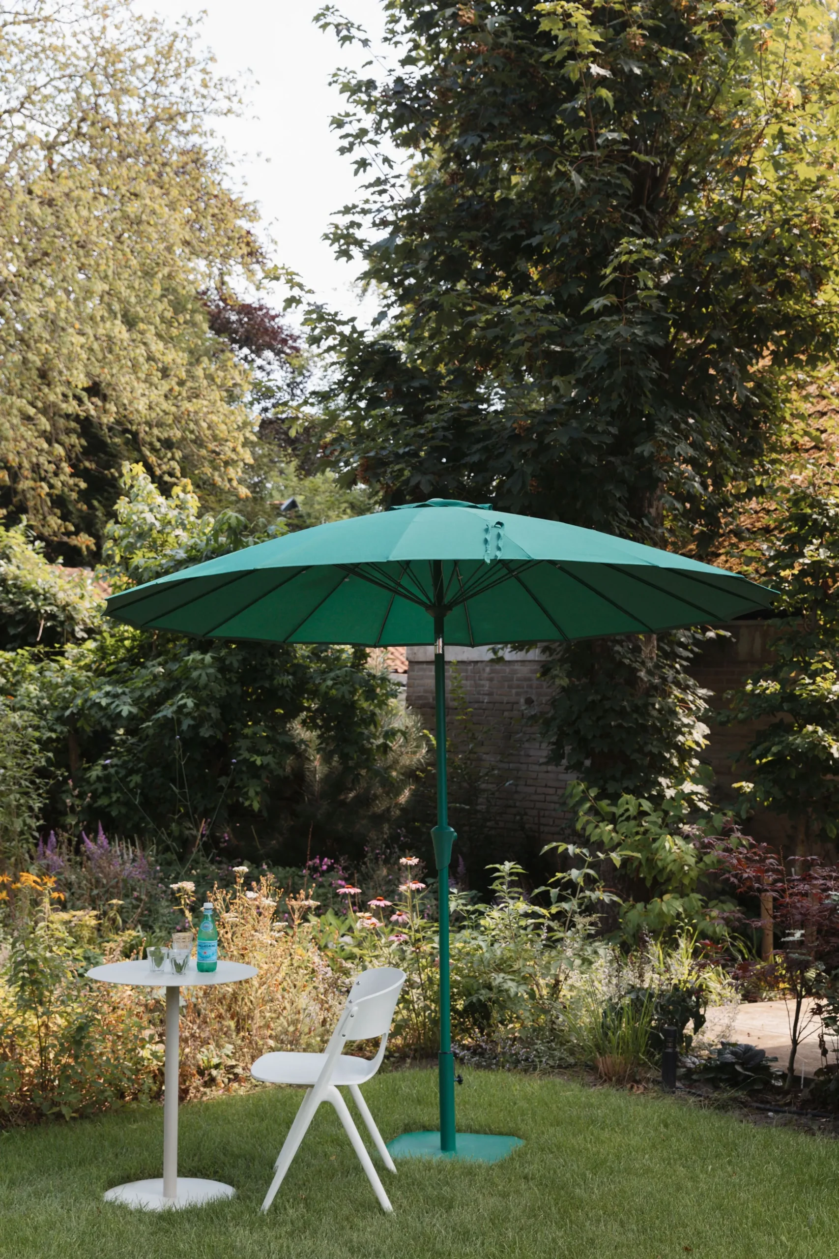 Gefertigt aus einem robustem Metallgestell und strapazierfähigem Polyesterstoff, überzeugt dieser Sonnenschirm nicht nur durch Stabilität, sondern auch durch Langlebigkeit. Der mitgelieferte Standfuß sorgt für festen Halt und schnelle Einsatzbereitschaft.
