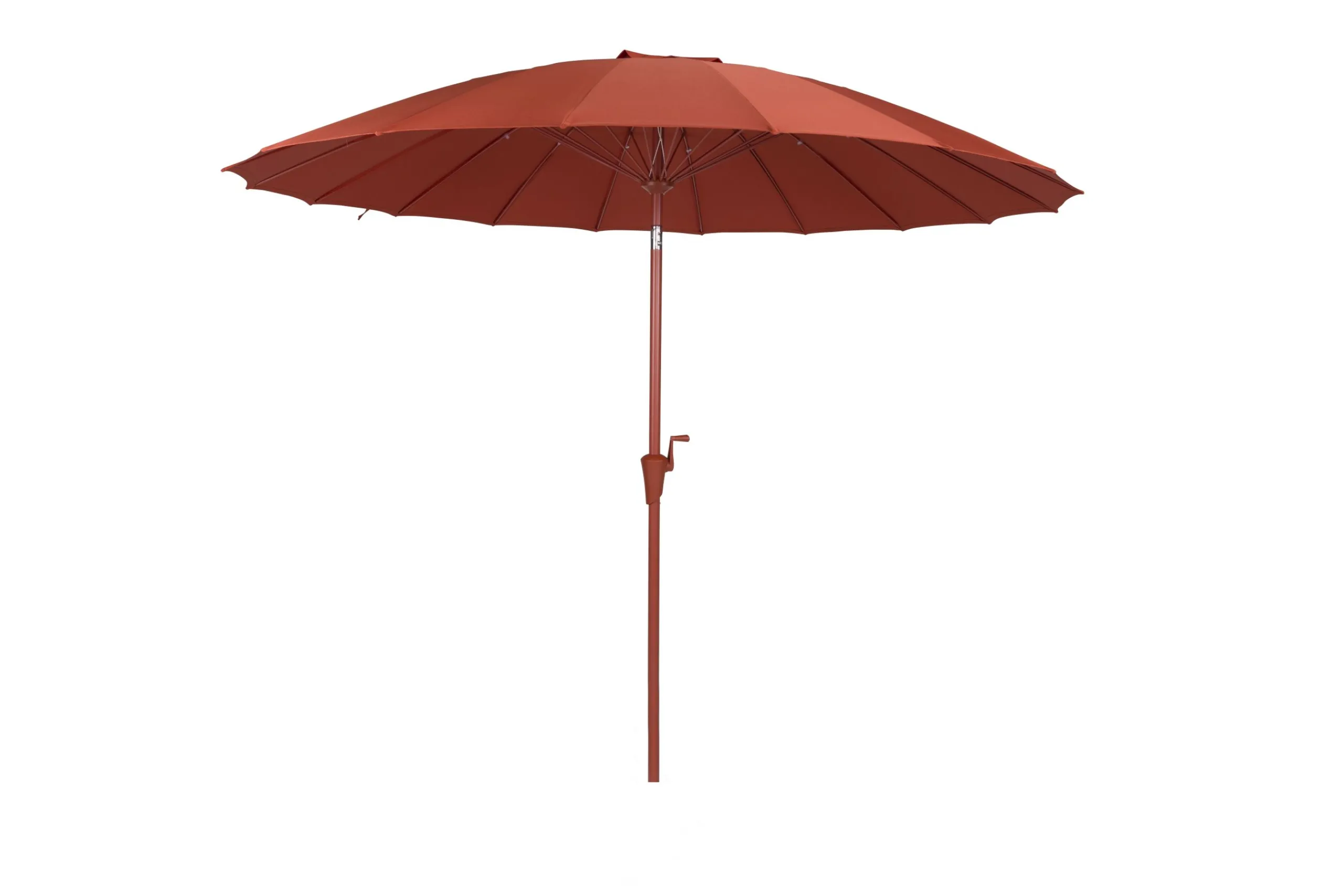 Der Schirm lässt sich bequem per Kurbelmechanismus öffnen und schließen. Für optimalen Sonnenschutz auch bei tief stehender Sonne lässt sich der obere Teil des Schirms zur Seite neigen – so haben Sie den Schatten immer dort, wo Sie ihn brauchen.